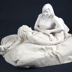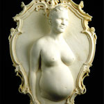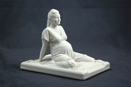 Der Vergleich mit dem klassischen Gipsabdruck zeigt, was wir meinen; mit der Erweiterung der Arbeit um das Gesicht entsteht eine ganz neue Qualität der Babybauch-Büste.