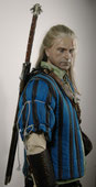 This life size replica stands out through it's authenticity. The clothes are hand-tailored and the weapons hand-forged. A 3D data from the company – CD Project, was used for a pattern. We were permitted to use the data of the most successful console game character of the year 2011 – The Witcher 2 : Assassins Of Kings. With this copy we created the figure and produced clothing and weapons. Some of Geralt von Riva's main features are his wolf amulet and the special sword handle ( pommel ) with wolves heads which were moulded out of pewter, according to the game pattern. The hair was woven from real hair and done in the style of the character.